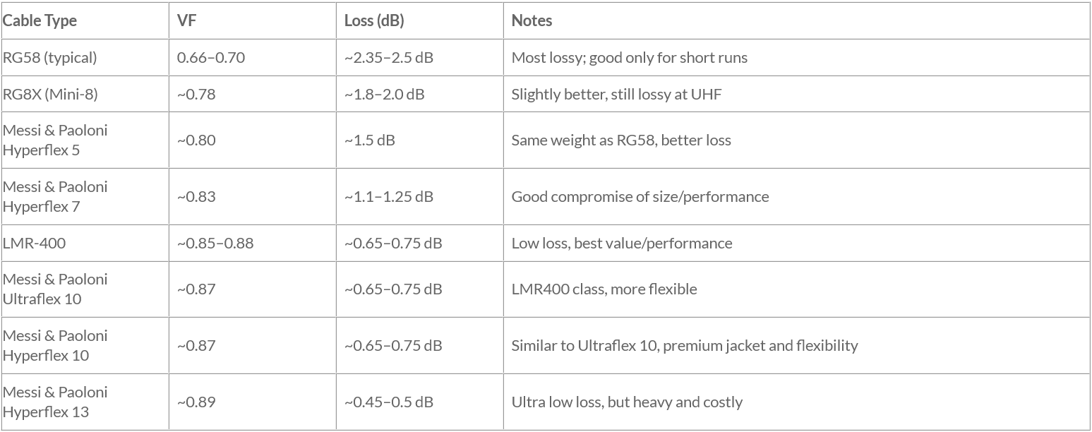 - Here is the Messi cable https://www.gigaparts.com/messi-and-paoloni-hyperflex-13-coax-cable.html (Make sure to choose the PL-259 connectors and say 50′ would likely be enough)